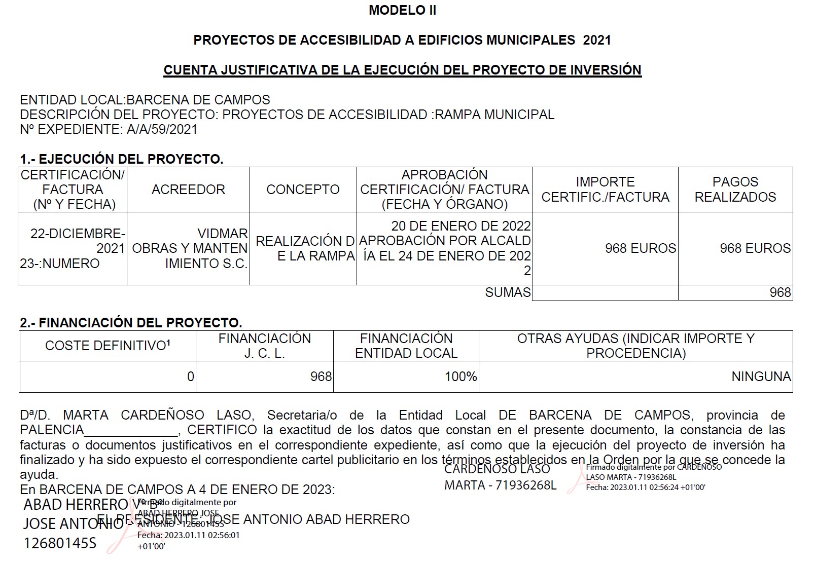 | Título del proyecto | Instalaciones fotovoltaicas para autoconsumo con fuentes de energía renovable en el Ayuntamiento de Bárcena de Campos. | ||